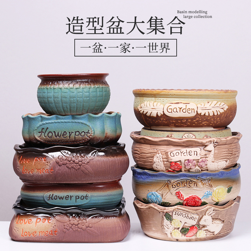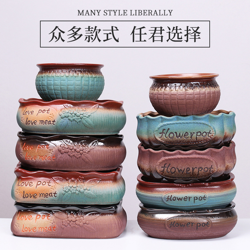 Multi-meat flower pot large parquet large caliber group raw hand painted with coarse pottery and breathable