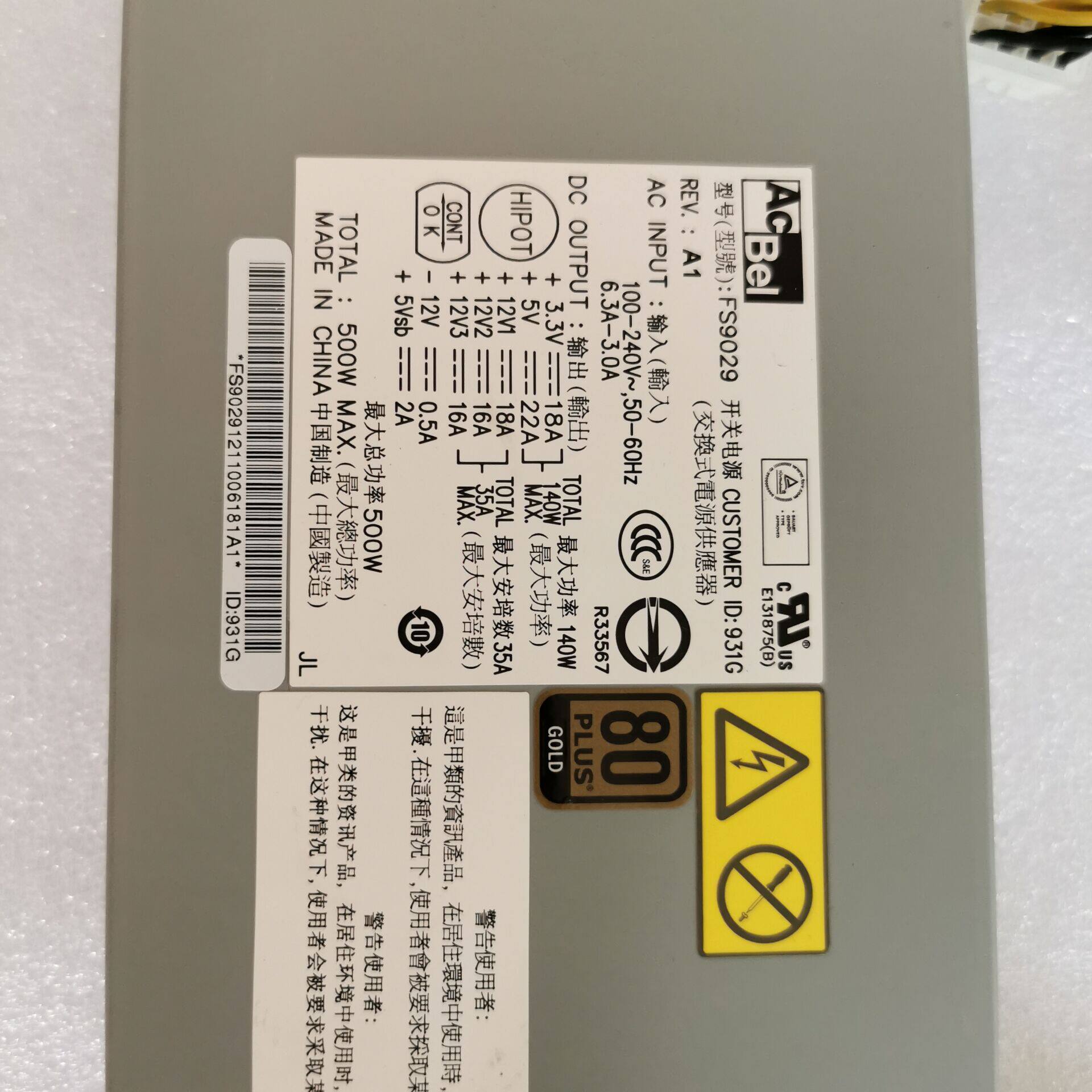 Acbel Kanshu 500W 1U server 80 gold high energy efficiency power supply FS9029 interface 24p 8