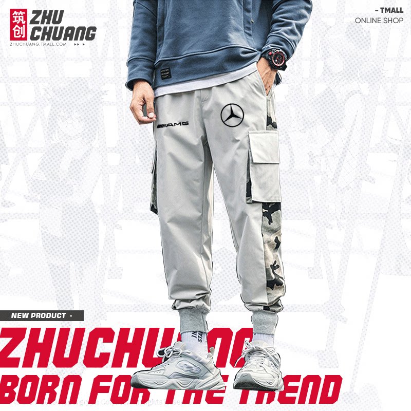 Customizable Mercedes-AMG car personality printing camouflage trousers overalls men's cigarette pants men's and women's casual js
