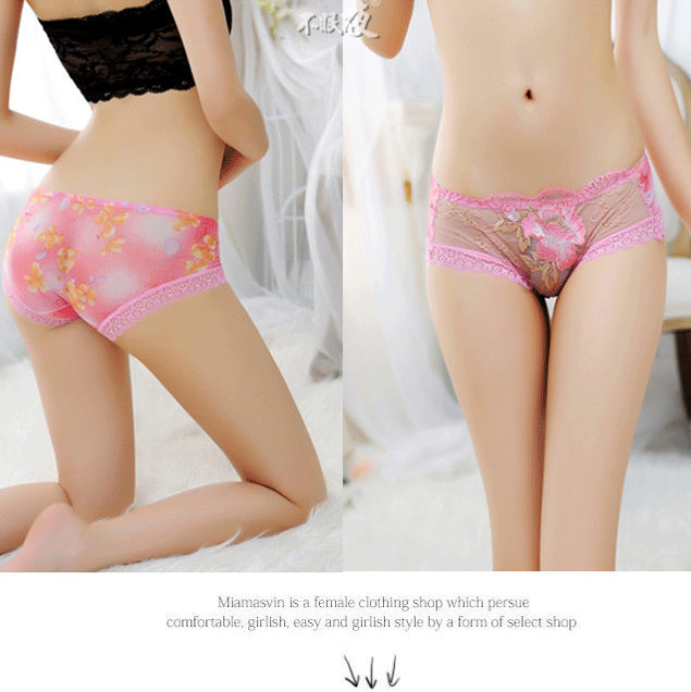 B209 Clairvoyant Four-corner Underwear Seductive Cotton Bottom Crotch Sexy Embroidery Printed Lace Transparent Young Woman
