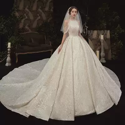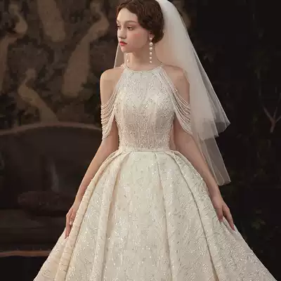 "Shu Di" sling Hepburn wedding dress 2021 new bride fringe shoulder temperament fairy trailing French simple Female