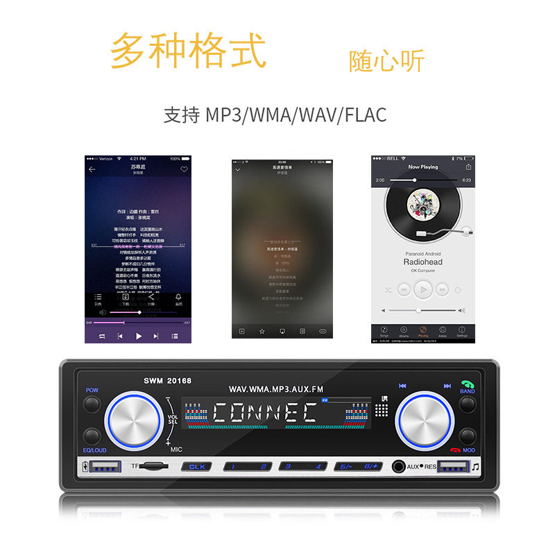 Car mp3 with charging bluetooth hands-free call player card radio 20168