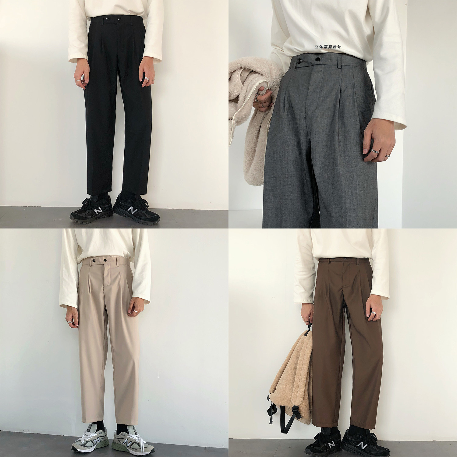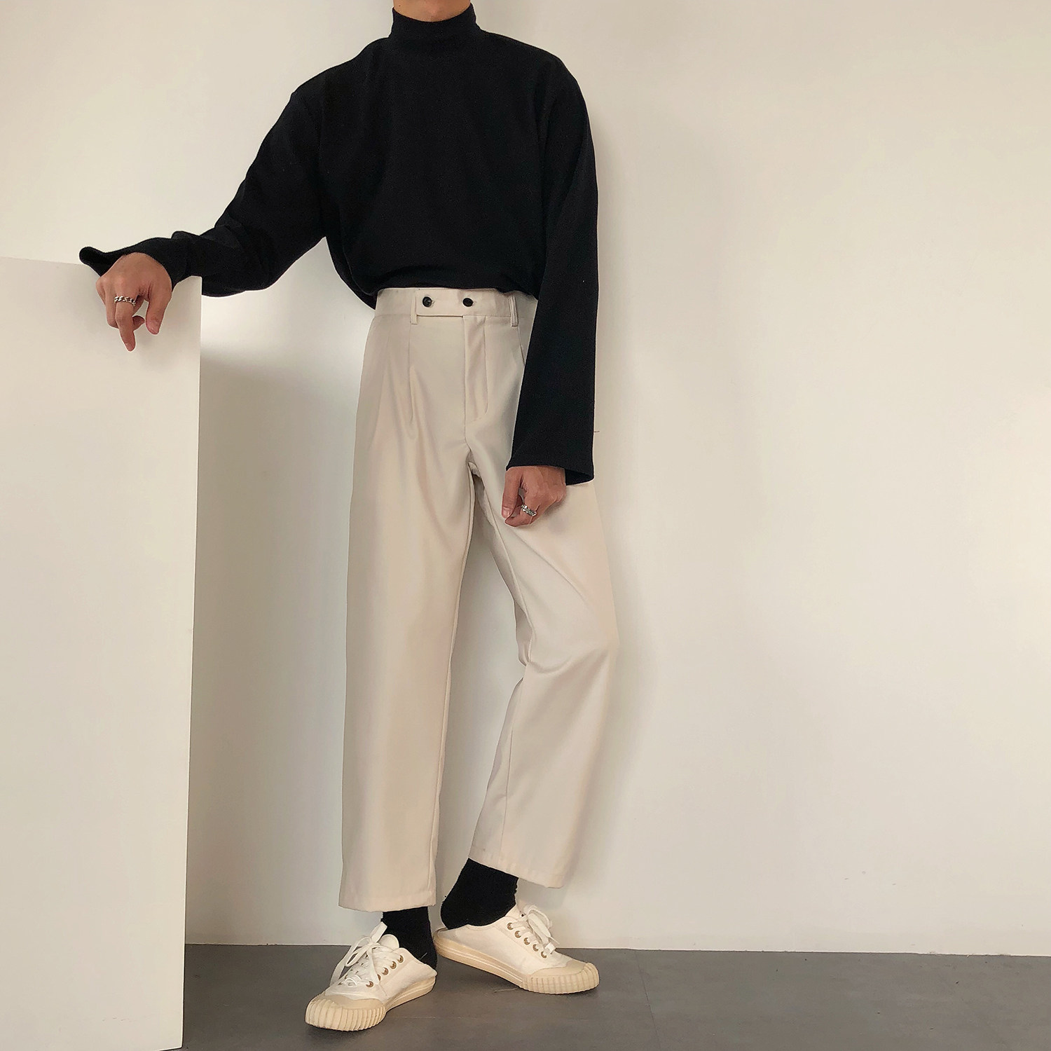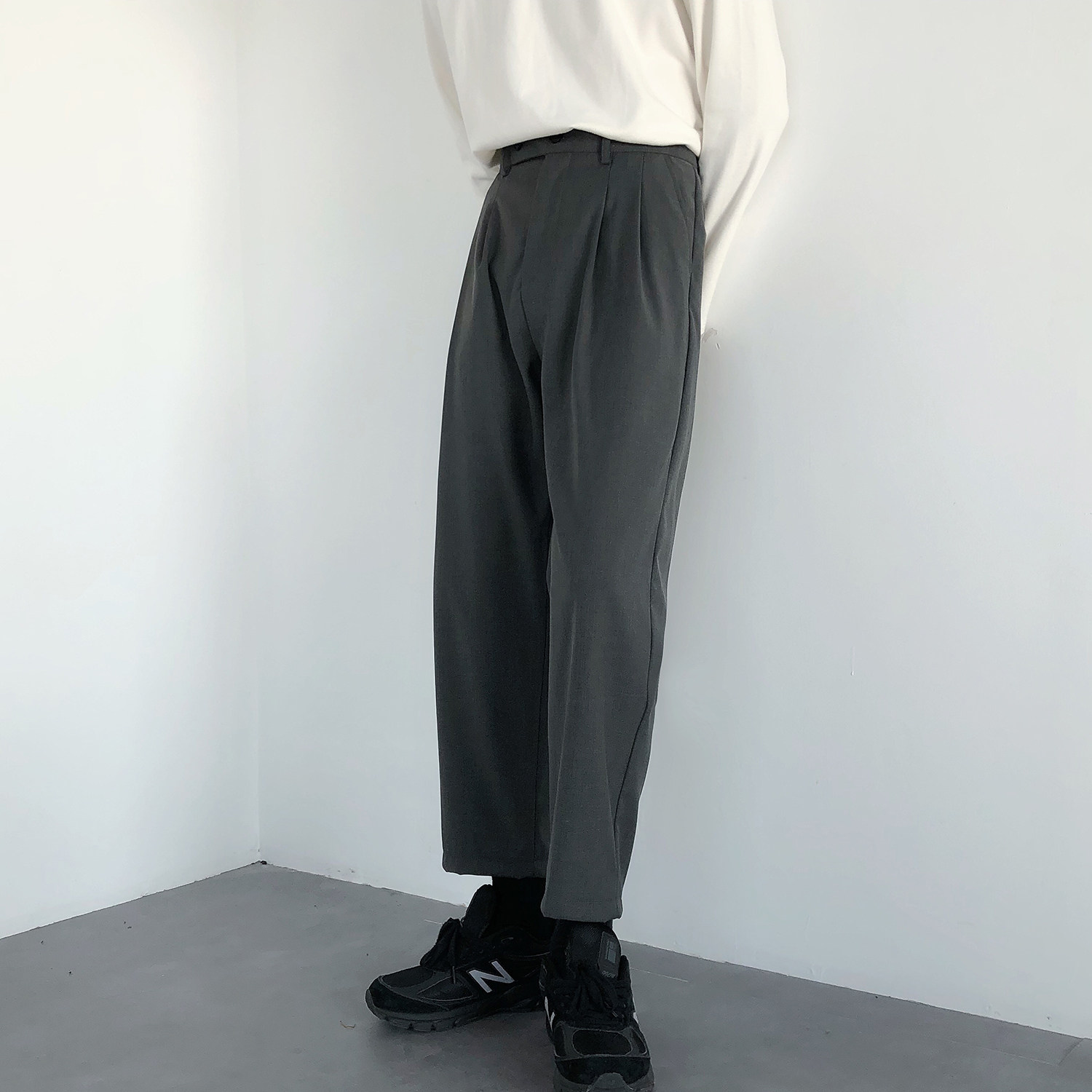 19studio Korea ulzzang Free Ironing Pendant Feel Loose Straight Drum Pants Korean Version Casual Pants 90% West Pants Man