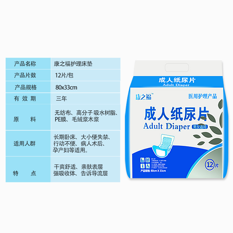 Extra large adult diapers for the elderly with urine pad 80X33cm fat people special diapers Kangzhifu