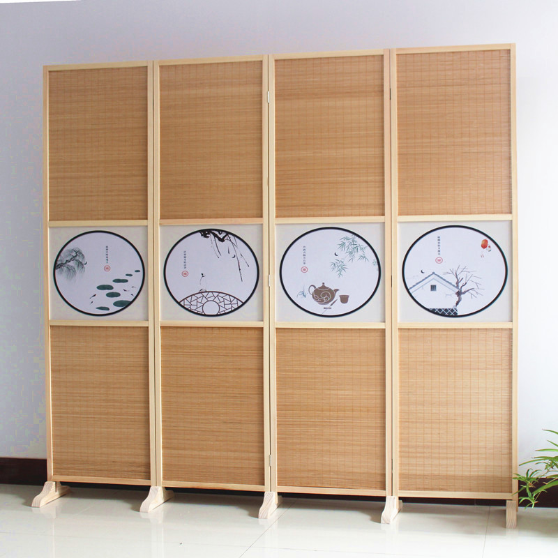 New Chinese style screen partition folding partition living room restaurant simple modern office solid wood porch mobile folding screen