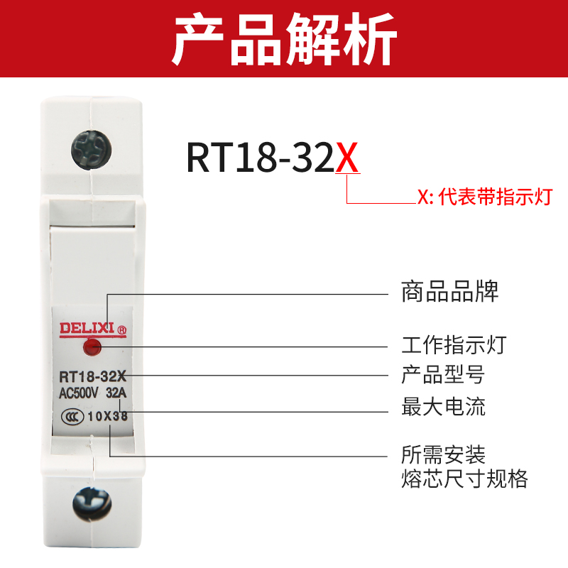 Dresi RT18-32X 1P with light fuse holder fuse holder rail-type melt core 16A32A