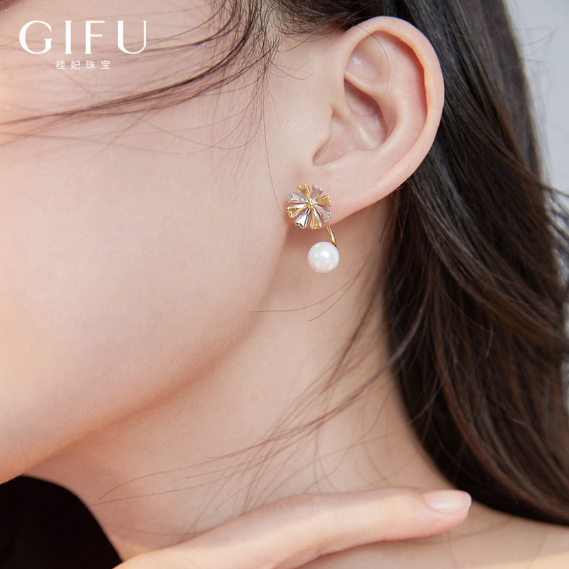 GIFU925 Sterling Silver Petal Pearl Stud Earrings Flower Earrings Female Earrings Temperament Earrings 2021 New Trend