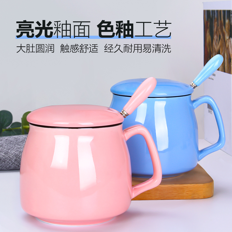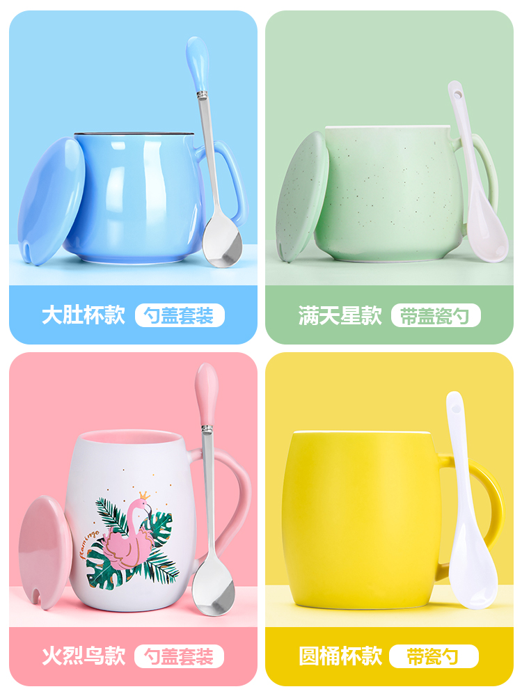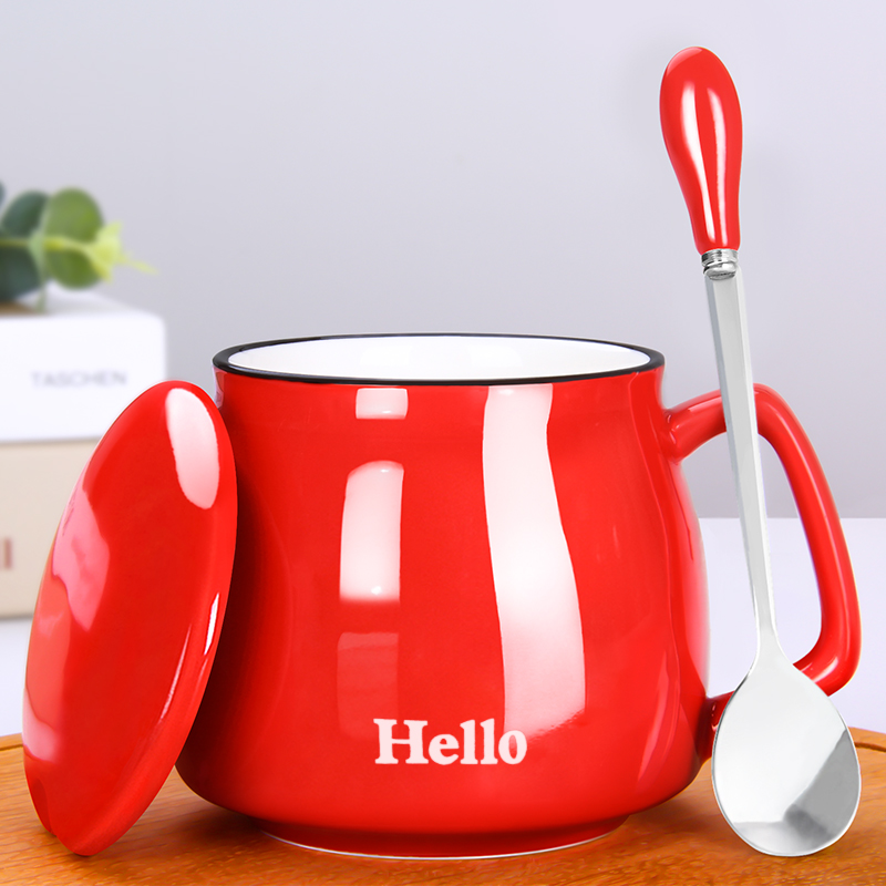 Big belly Cup-red Hello-porcelain spoon big belly Cup-Blue Happy-with porcelain spoon big belly Cup-warm red-spoon lid set big belly Cup-sapphire blue-spoon lid set Big Belly