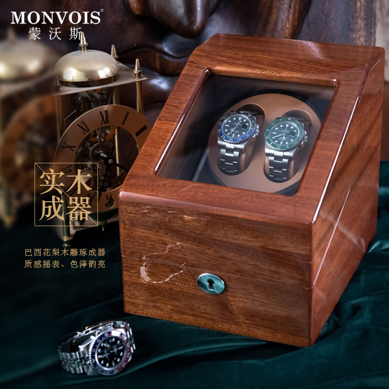 MONVOIS IMPORTED SOLID WOOD SELF-SHAKING METER Mechanical Watch Transits Watch Jewelry Containing box Home Mini anti-magnetic