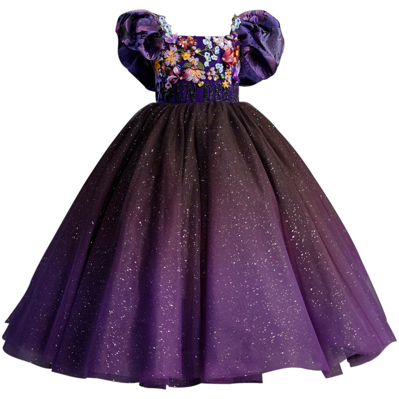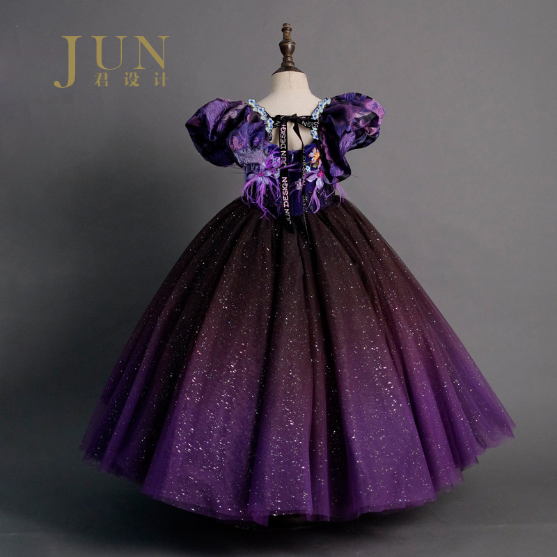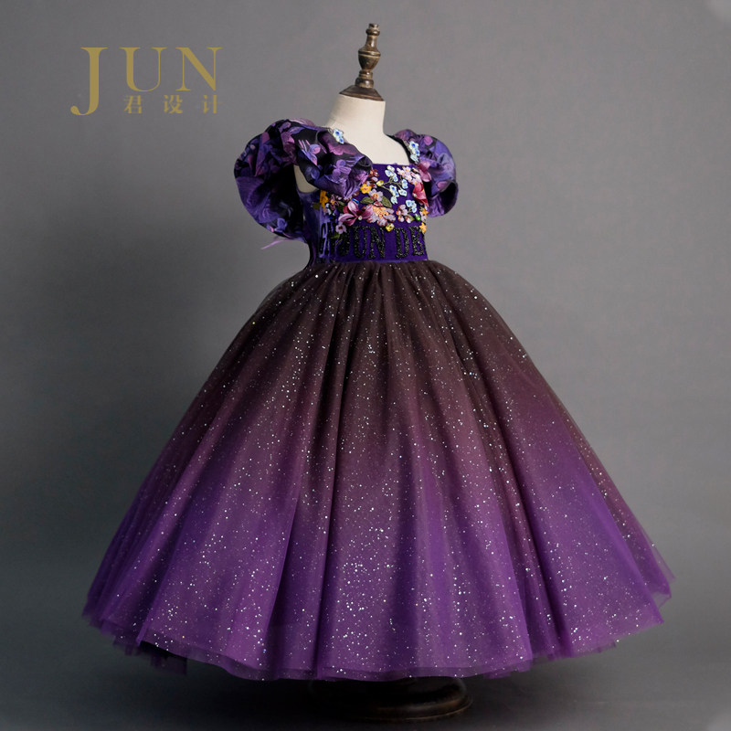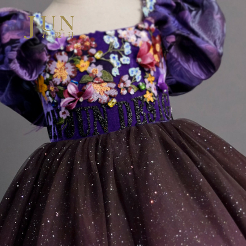 Jun design girls high-end evening dress Foreign air puff sleeve puff yarn piano girl catwalk children princess dress
