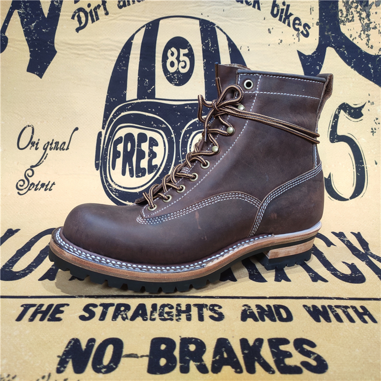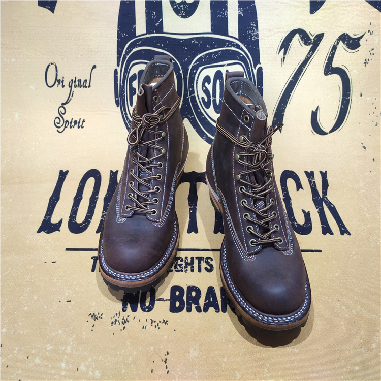 HORWEEN Holvin Crazy Horse Cowhide Leather Hand Sewed Stich Down Short Face Toilwear Shoes National Boots