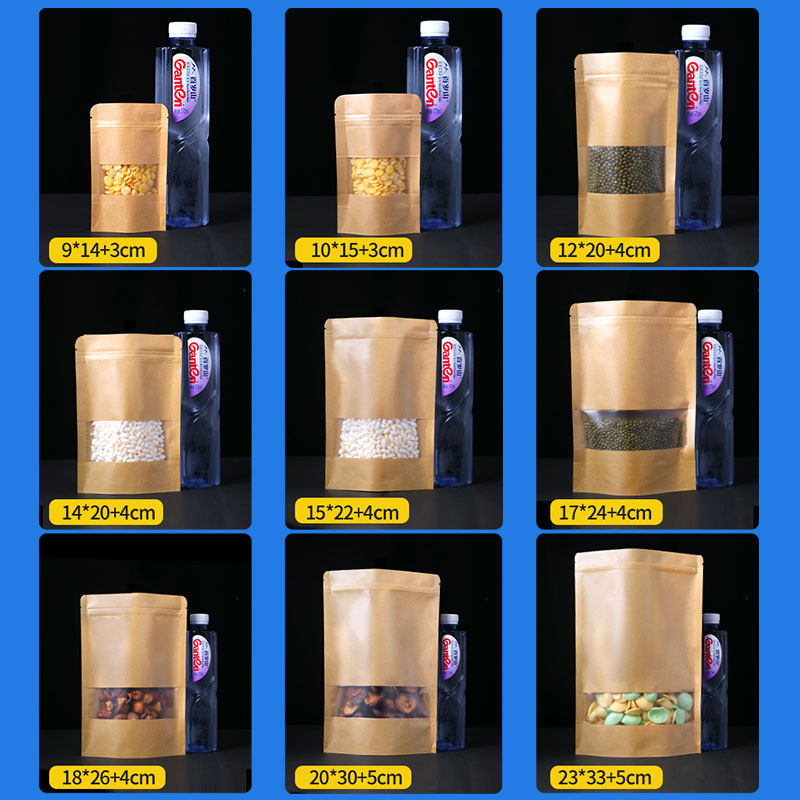 Waterproof open window kraft paper self-sealed tea pocket melon beef dried fruit snack food packaging bag