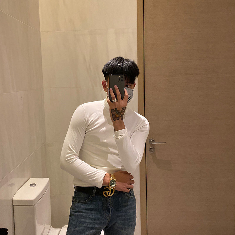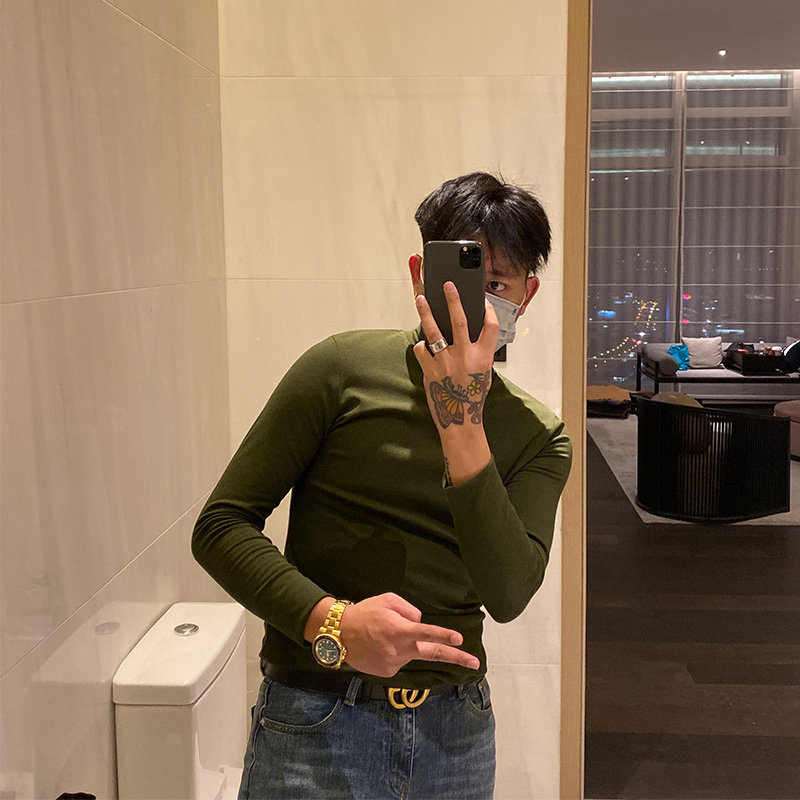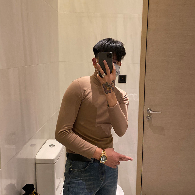 BROTHER winter simple polished half high collar base shirt male Korean version of slim solid color plus velvet long sleeve T-shirt tide