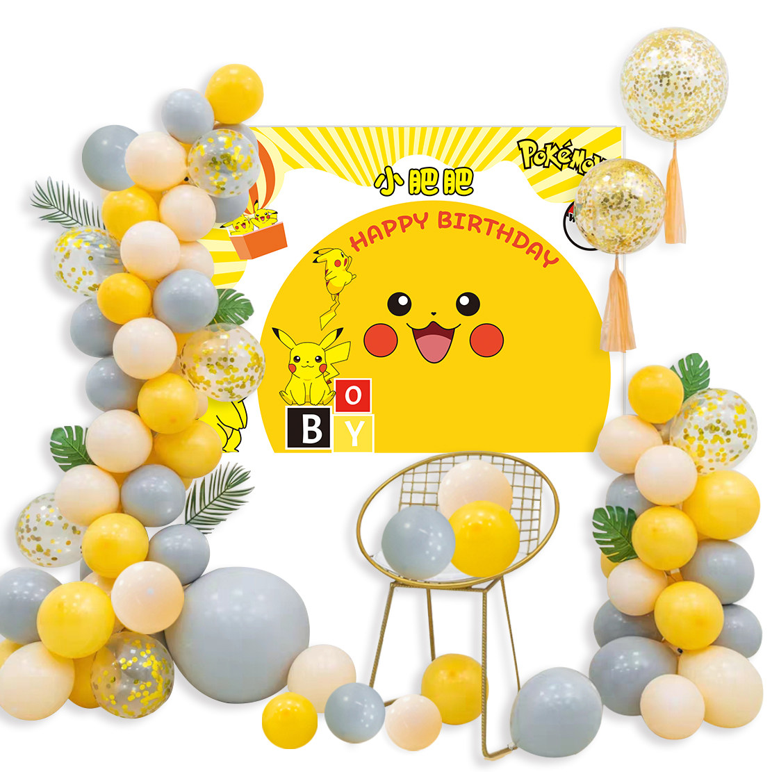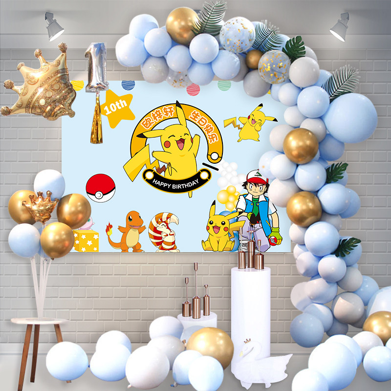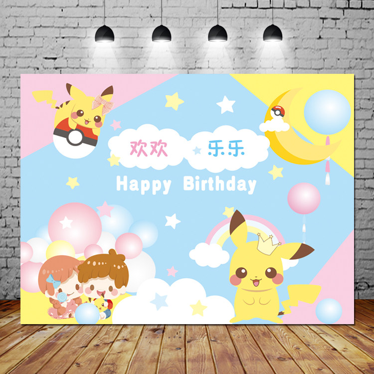 Pikachu Birthday Poster Children's 100-Day Banquet Birthday Photo Background Cloth Custom Yellow Dessert Table Balloon Arrangement - Taobao