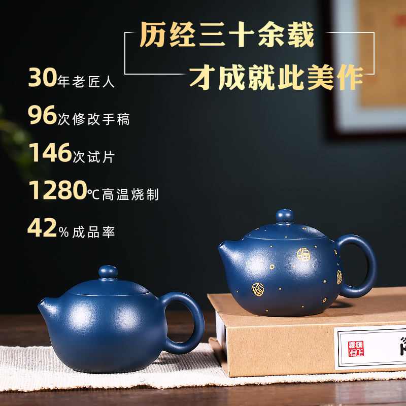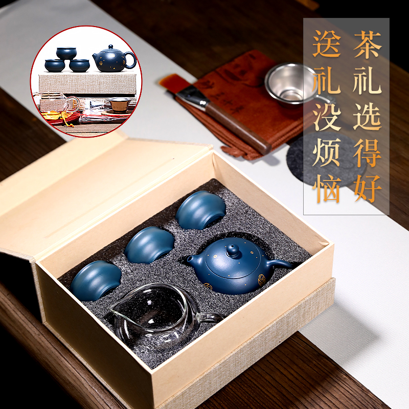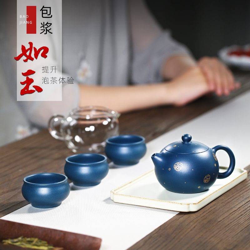Youtu Yixing handmade original mine dark green mud purple sand pot Gift Gongfu tea pot Gold Xishi pot tea set