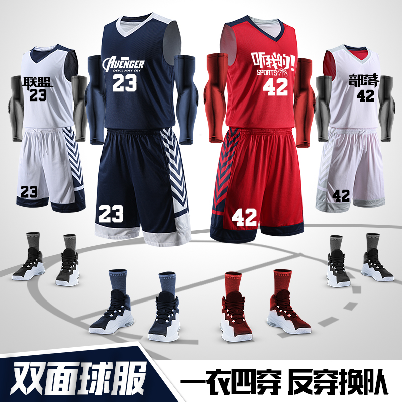 Double-sided basketball suit male custom match team suit children's training suit printed on two sides wearing jersey