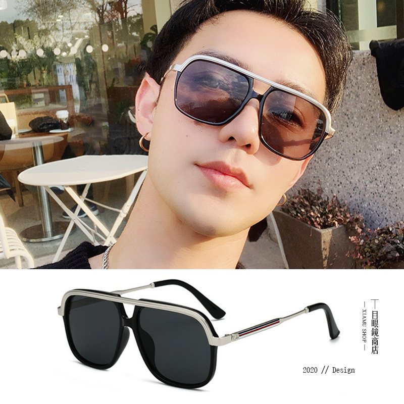 European and American retro square frame sunglasses Male ins personality round face big face thin double beam square driving net red sunglasses