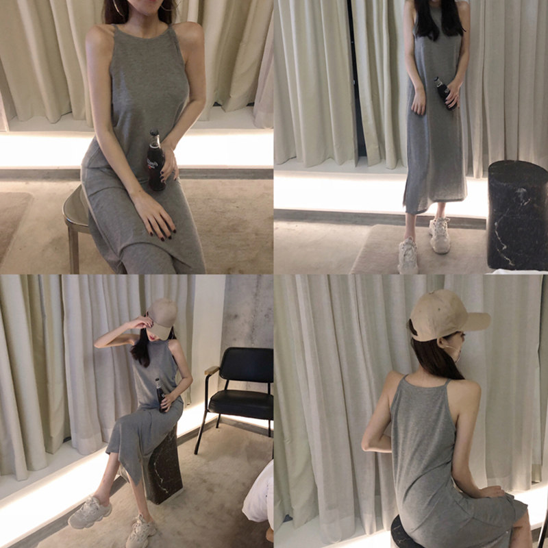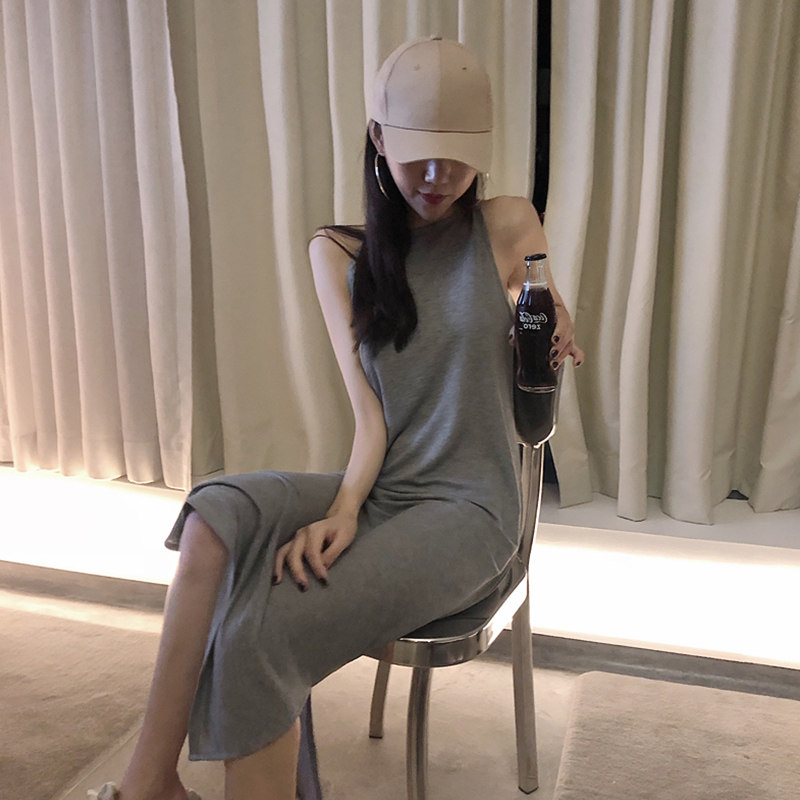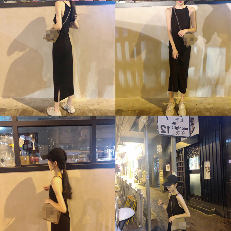 2021 Temperament Women's Dress Harness Small Subblack Dress Black Sleeveless Long Dress Chic Summer Pure Color Dress