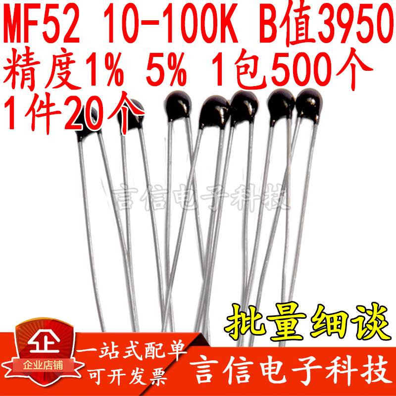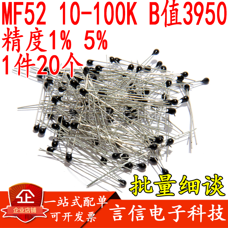 NTC thermistor MF52A 1K 5K 10K 50K 100K 1% 5% temperature sensor B value: 3950k