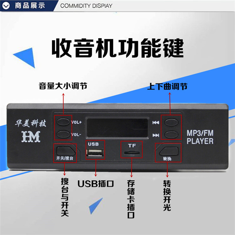 Electric battery tricycle on-board plug-in radio MP3USB with body disc player universal 12V speaker horn