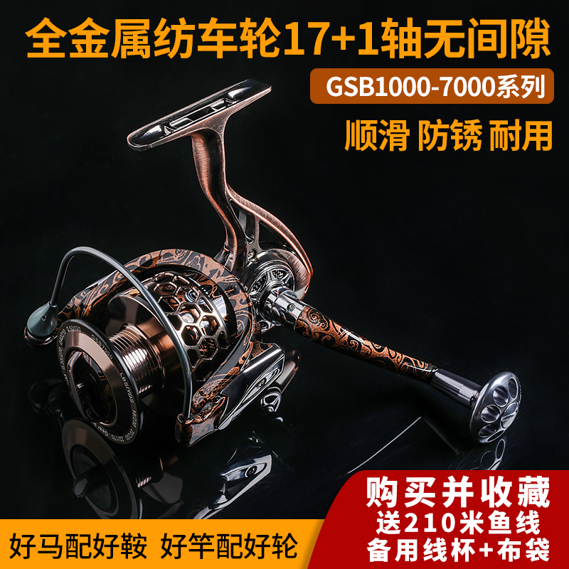 21 GSB fish wire wheel 18 shaft all-metal fishing wheel roll wire instrumental sea rod far throw wheel No gap Isolator road subwheel