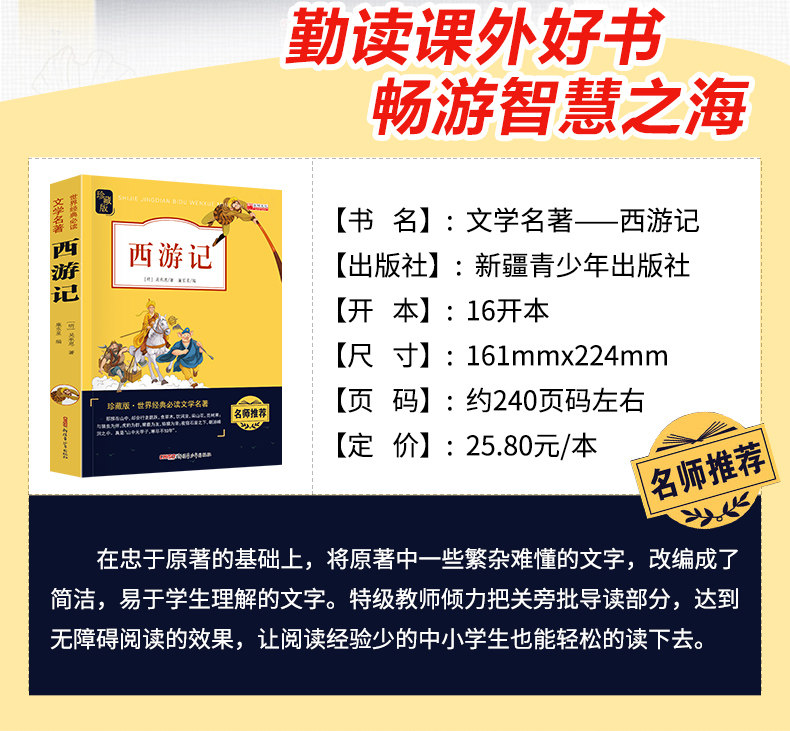 Primary School Students version of Journey to the West original genuine children's classic literature famous novels youth version of primary school extracurricular books students children's extracurricular reading required books
