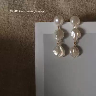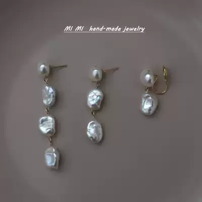 Imported 14K gold-filled natural shaped baroque pearl asymmetric mosquito coil ear clip earrings
