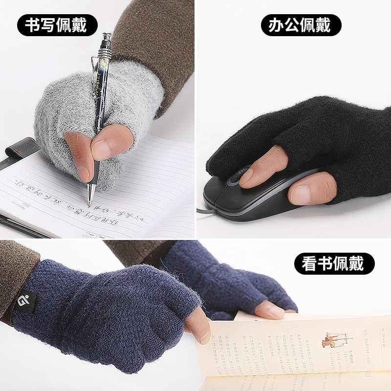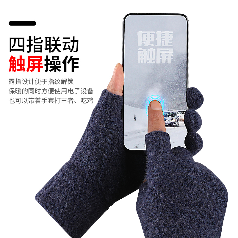 Leakage of two fingers gloves men knit warm students Dew Finger typing female autumn Winter delivery Rider Delivery Express Courier