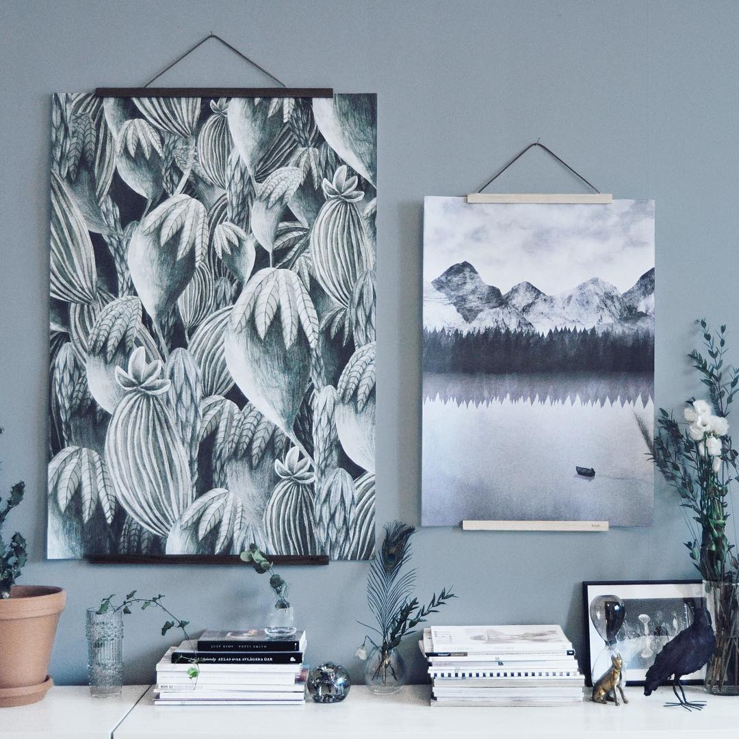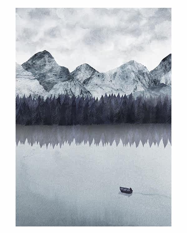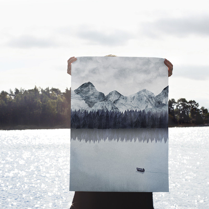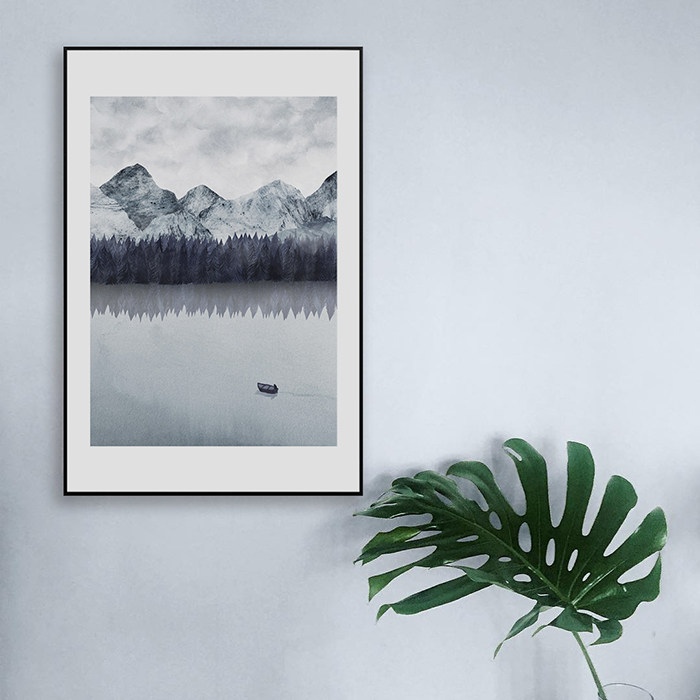 CoolerColour Nordic signed illustrator works snow mountain lake water decorative painting poster art
