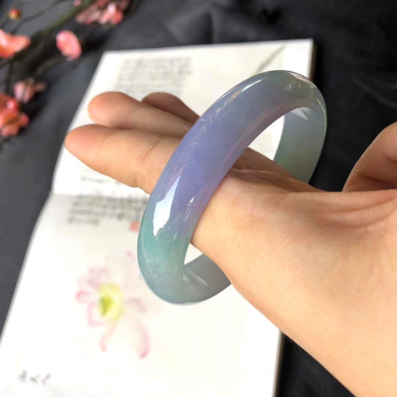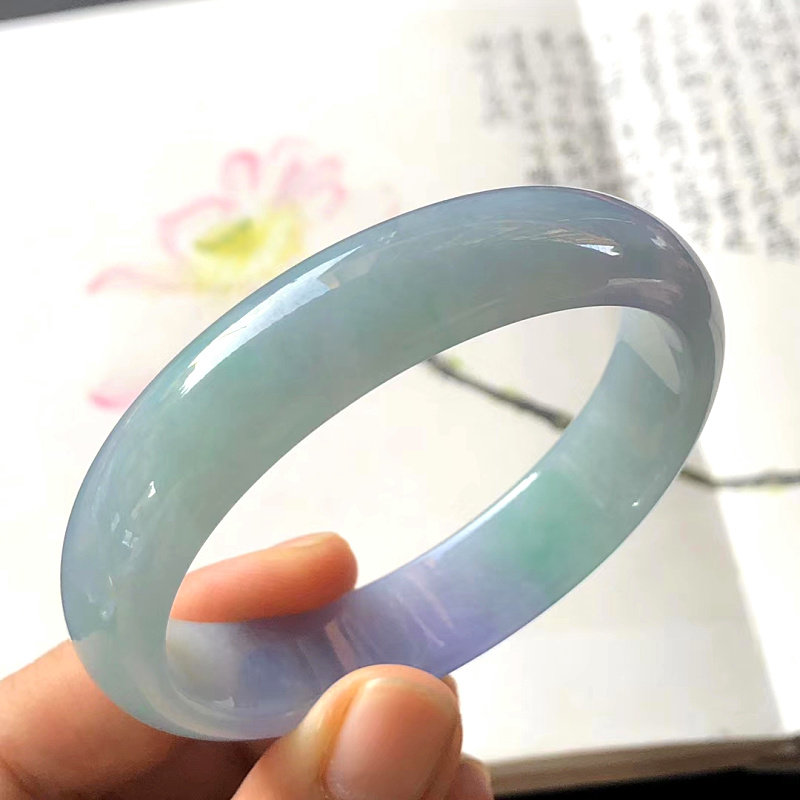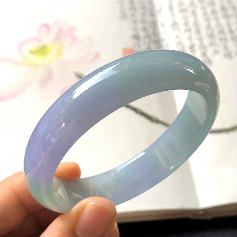 Natural ice species spring color jadeite bracelet round bar old pit Burmese floating purple jade bracelet s goods imperial concubine jade bracelet female models