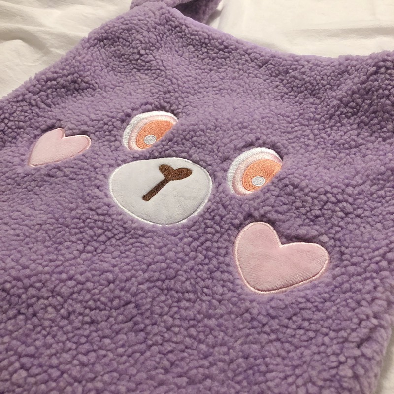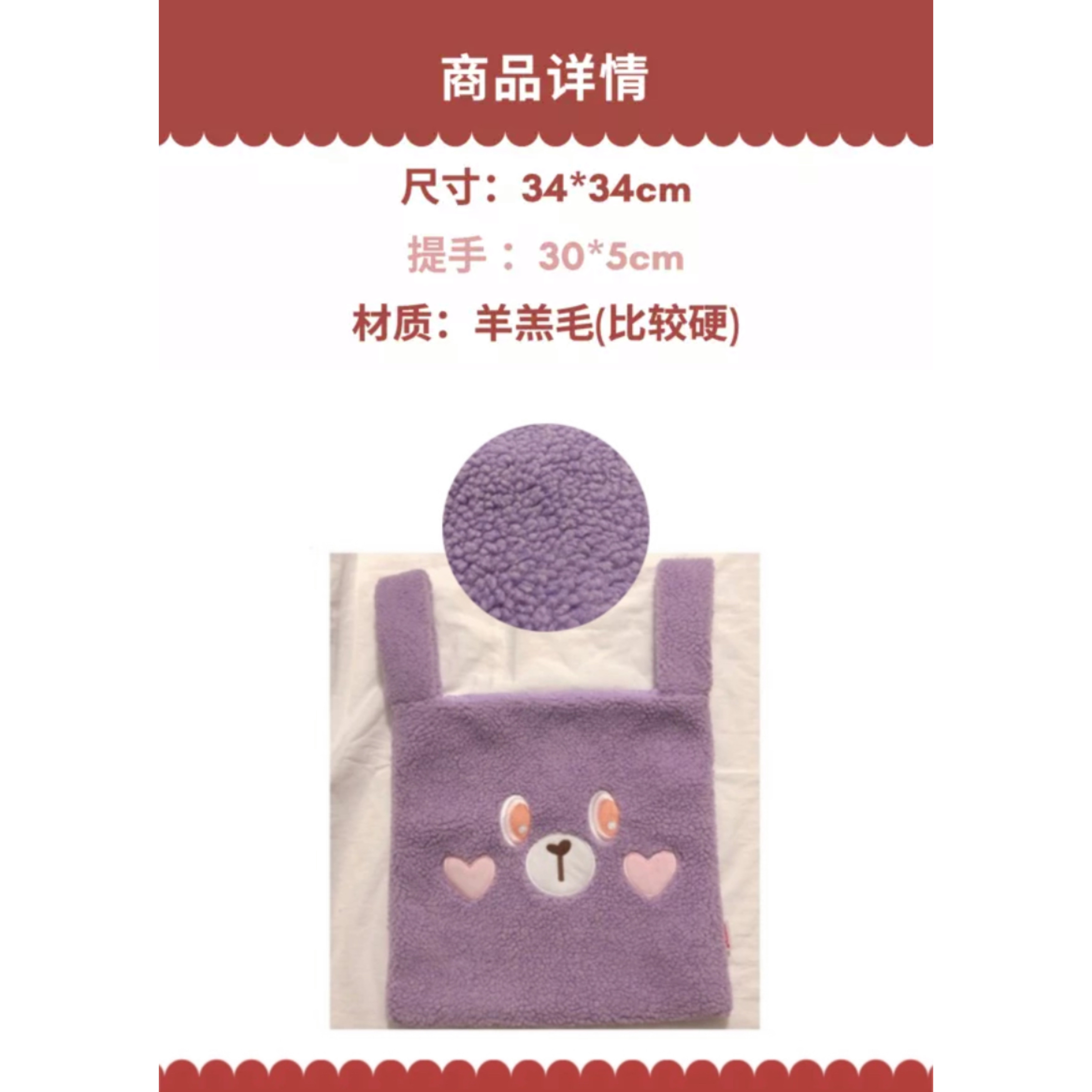 HEART BLUSH Original Miona Bunny Purple Shoulder Bag Embroidered Plush Shopping Tote Bag