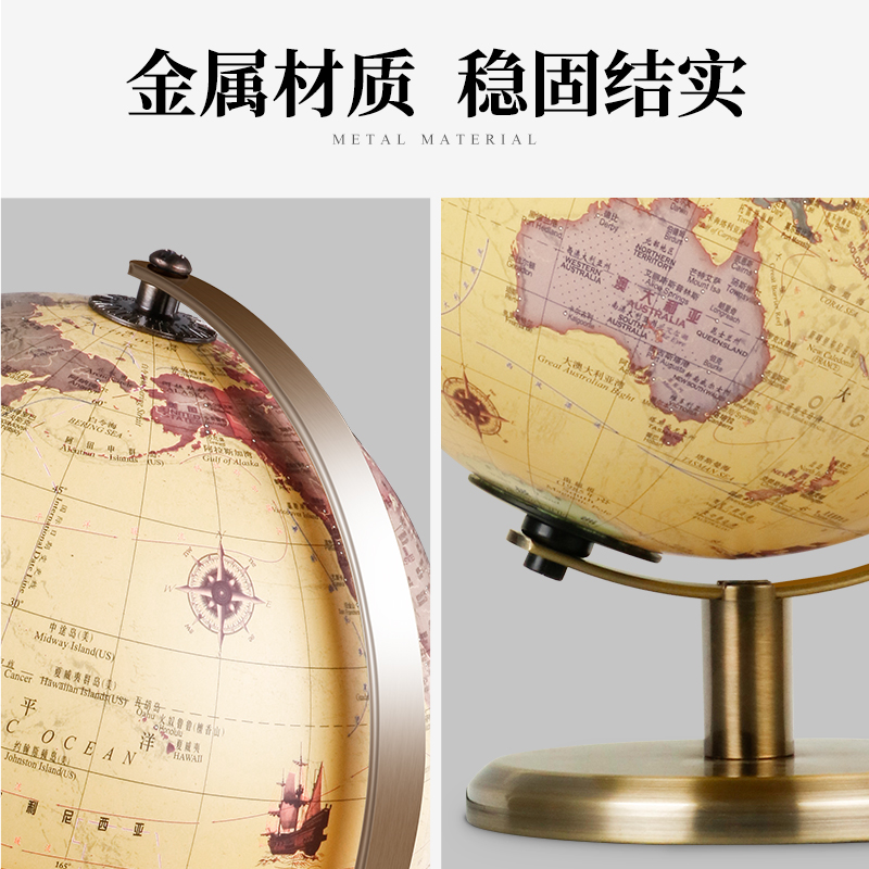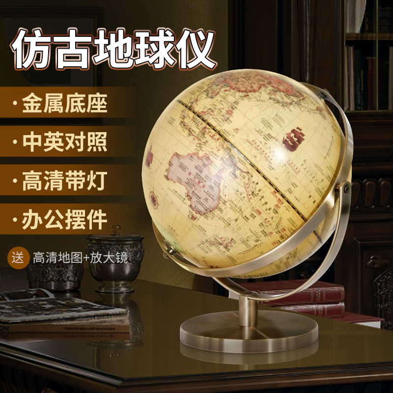 Retro Globe Pendulum piece student with junior high definition home furnishing small number 20cm English and Chinese Children 25cm Number of desks Living room with lamp imitation ancient American style Decorative Craft Gift Hem