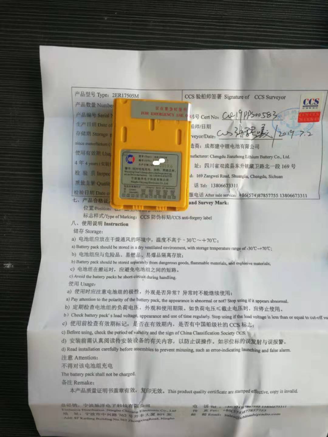 FT-68L Flying 2800 walkie-talkie 2ER17505M two-way wireless life raft battery ship inspection CCS certificate