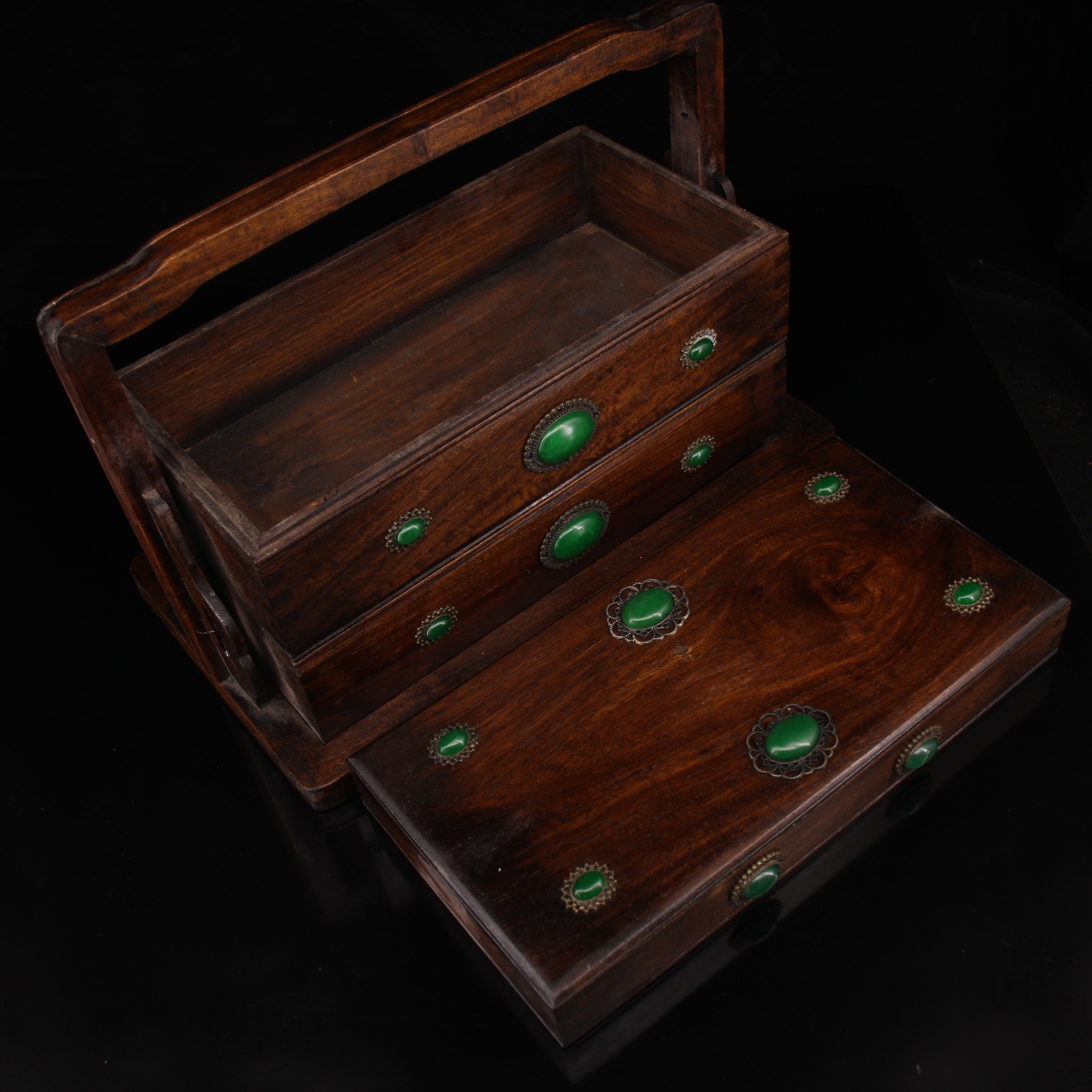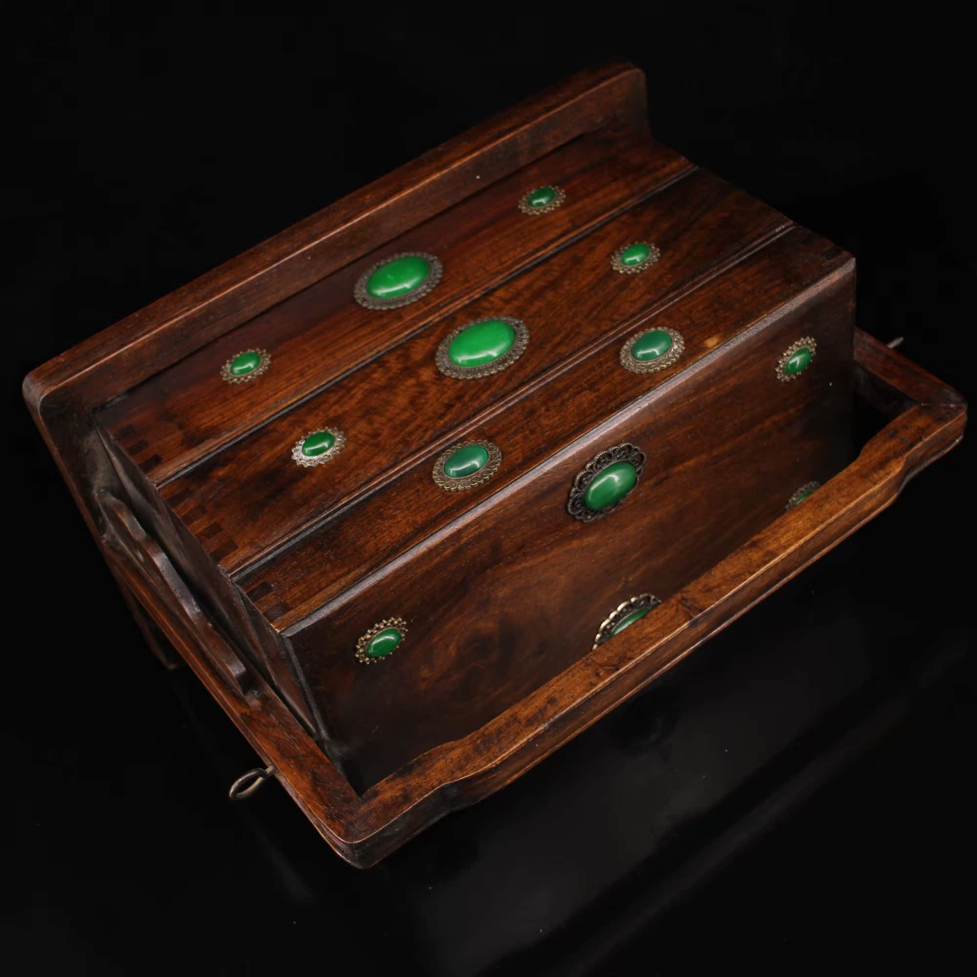 Antique miscellaneous collection Wood collection Court royal rosewood Handmade inlaid gem portable food box Lunch box