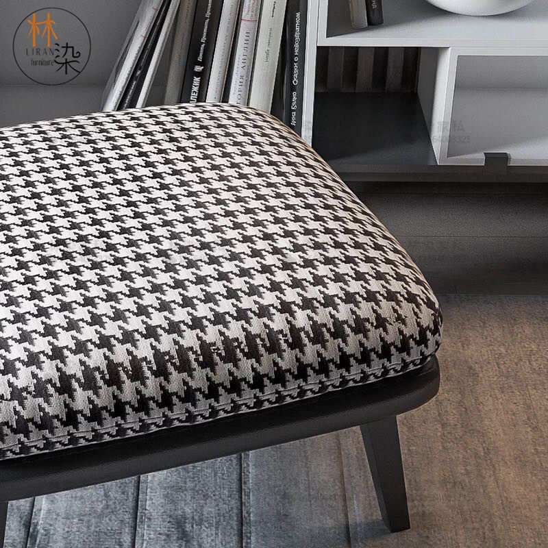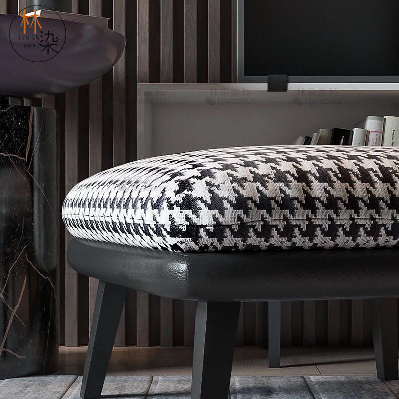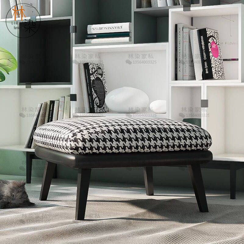 Italian light luxury footstool houndstooth fabric shoe changing stool fashion low stool bedroom bed end stool shoe store clothing store square stool
