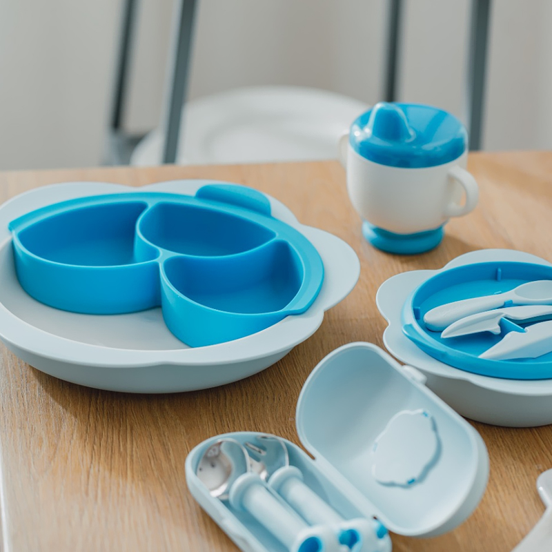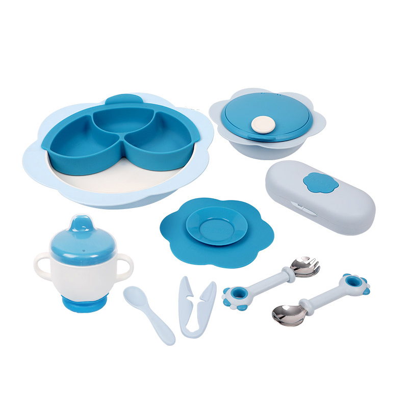 Blue Set Pink Set Pink Set Blue Forkspoon Set Powder Accessed Taiwan Cup Blue Supported Cup Powder Outside Food Bowl with Auxiliary Bowl Powder Outside Food Disk Blue Auxiliary Dining Disk Powder