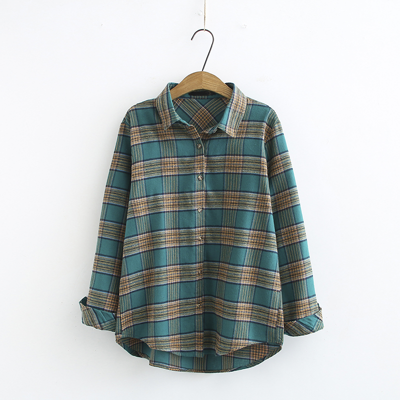 Spring Autumn Plaid Long Sleeve Shirt Woman Mid-Year Gats Up Overweight Women Clothes Fat Moms 200 Catty Can Wear Shirt Jacket