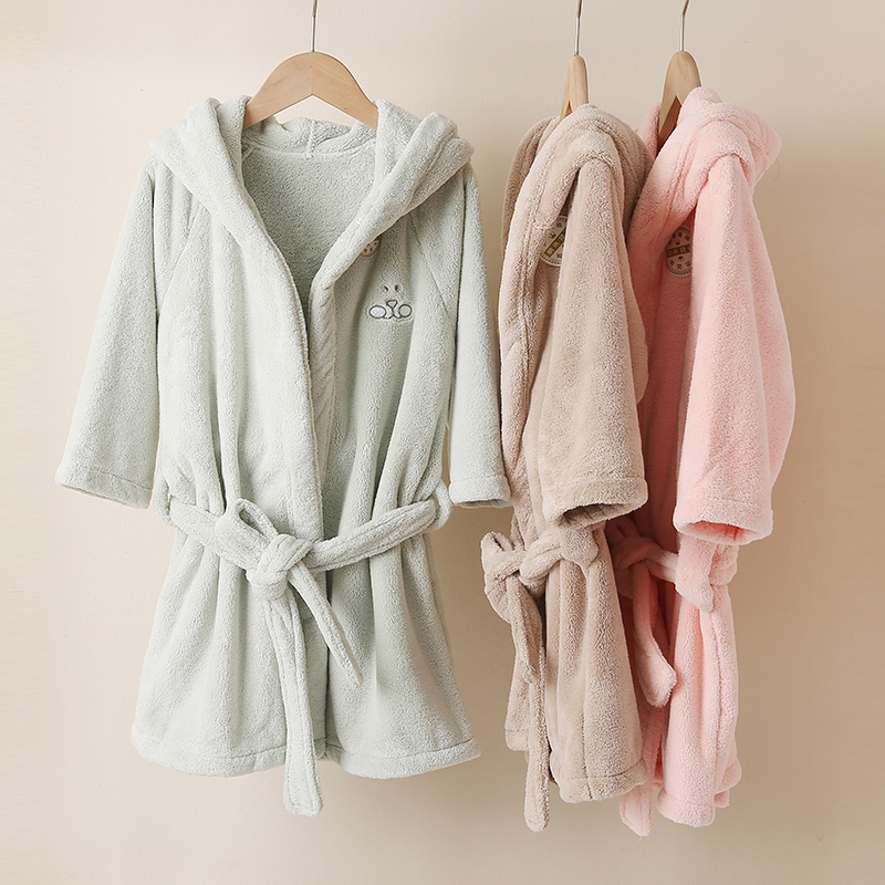 Children's hooded nightgown Winter thickened warm pajamas Boy and girl Yukata Baby bathrobe absorbent nano velvet