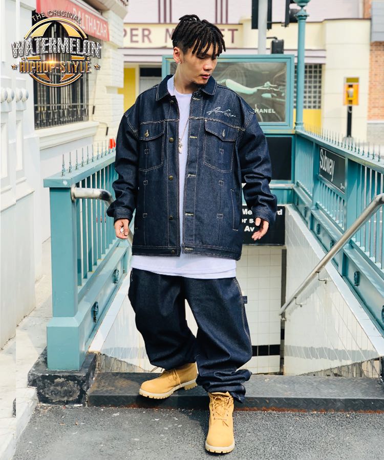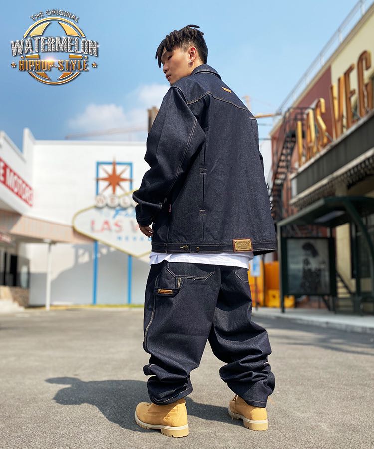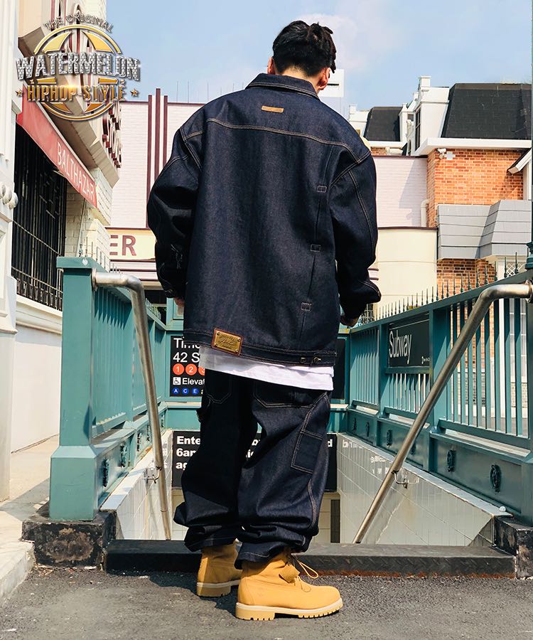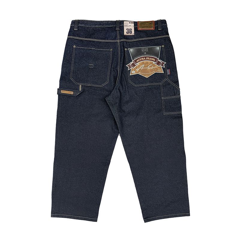 ACUSA JEANS raw pulp hard denim 15 an' heavy denim trousers embroidery seam craft hypertrophy plate
