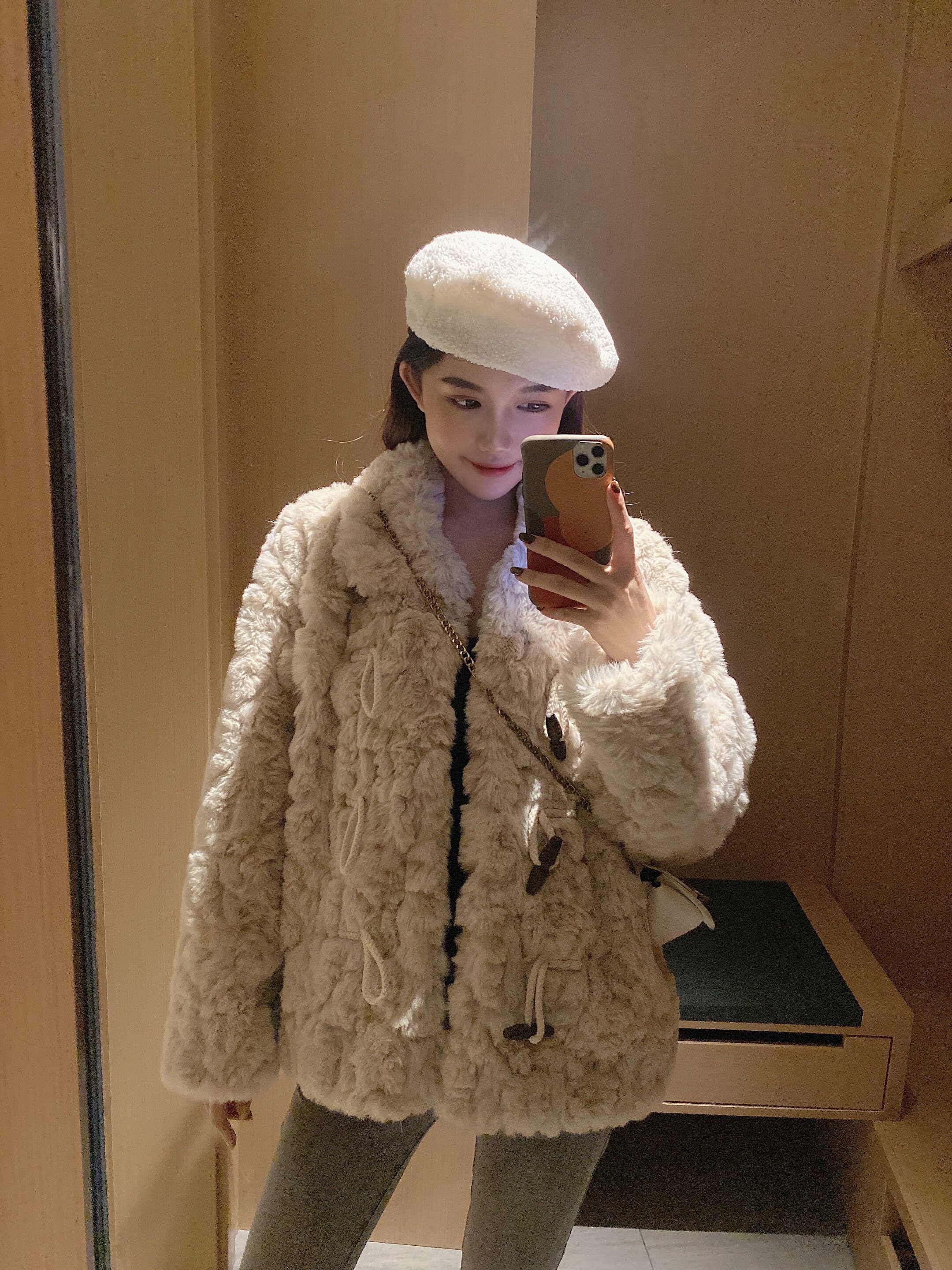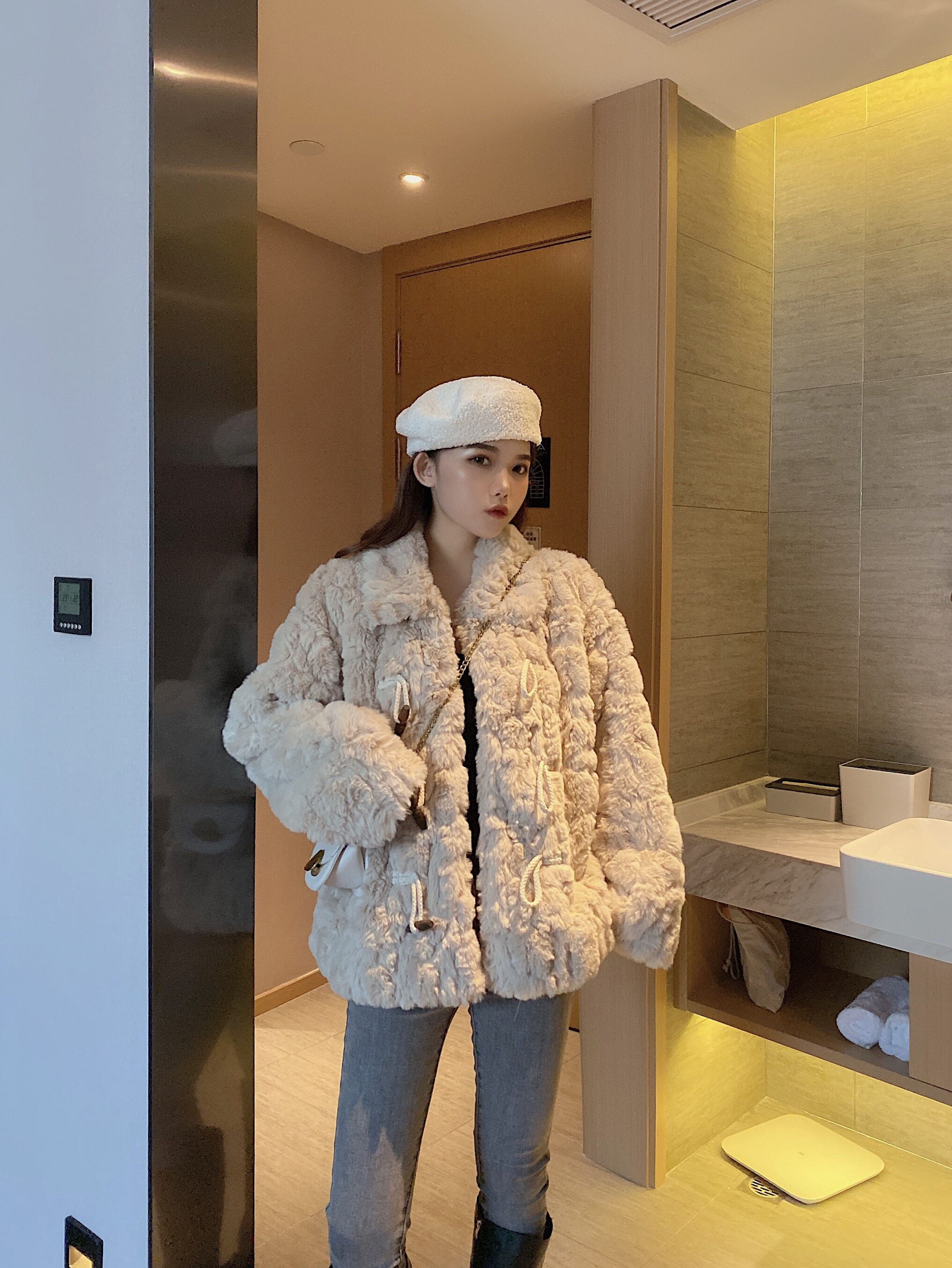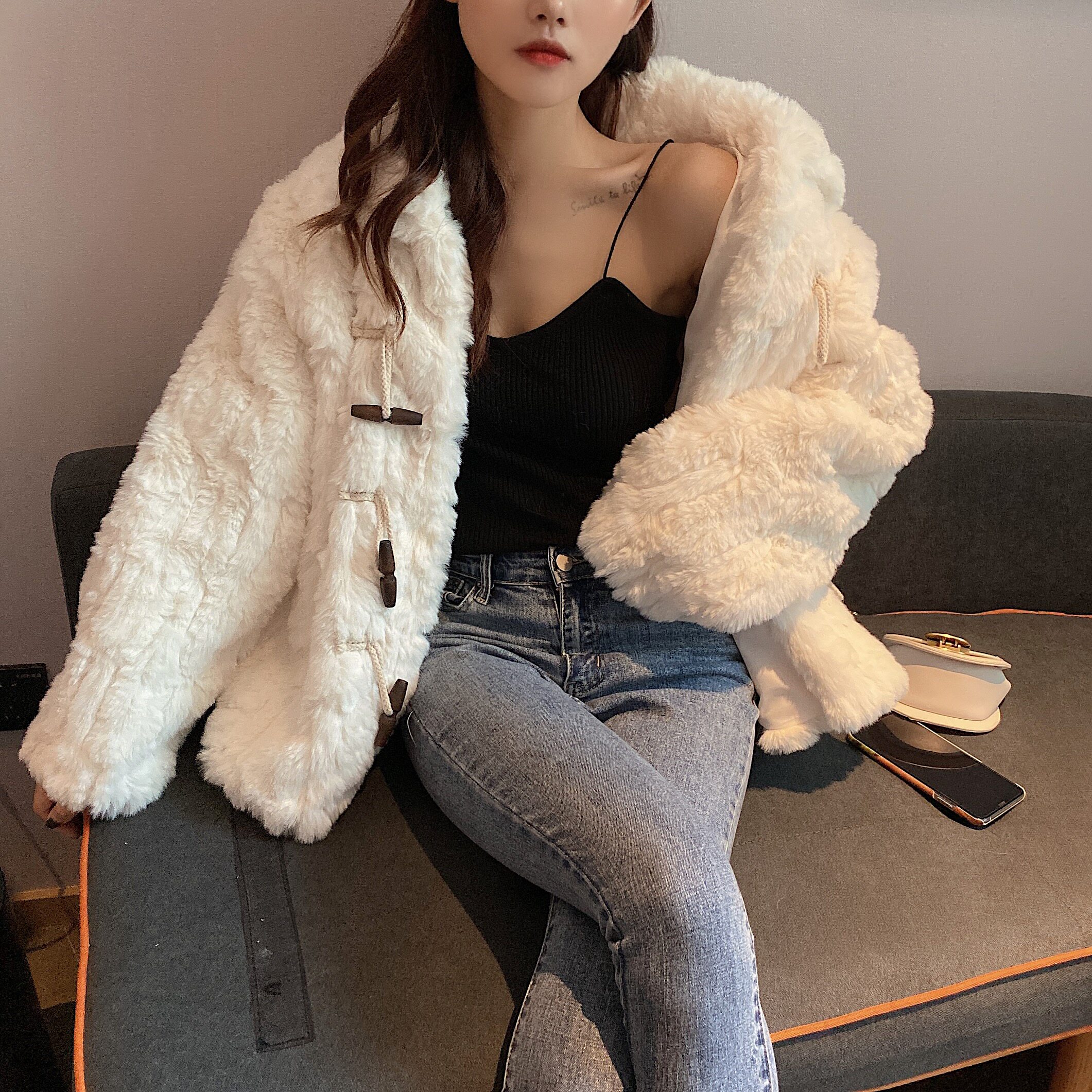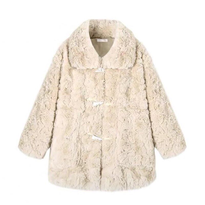 2020 winter wool coat short thickened horn buckle loose lamb fur grass small imitation leather grass woman