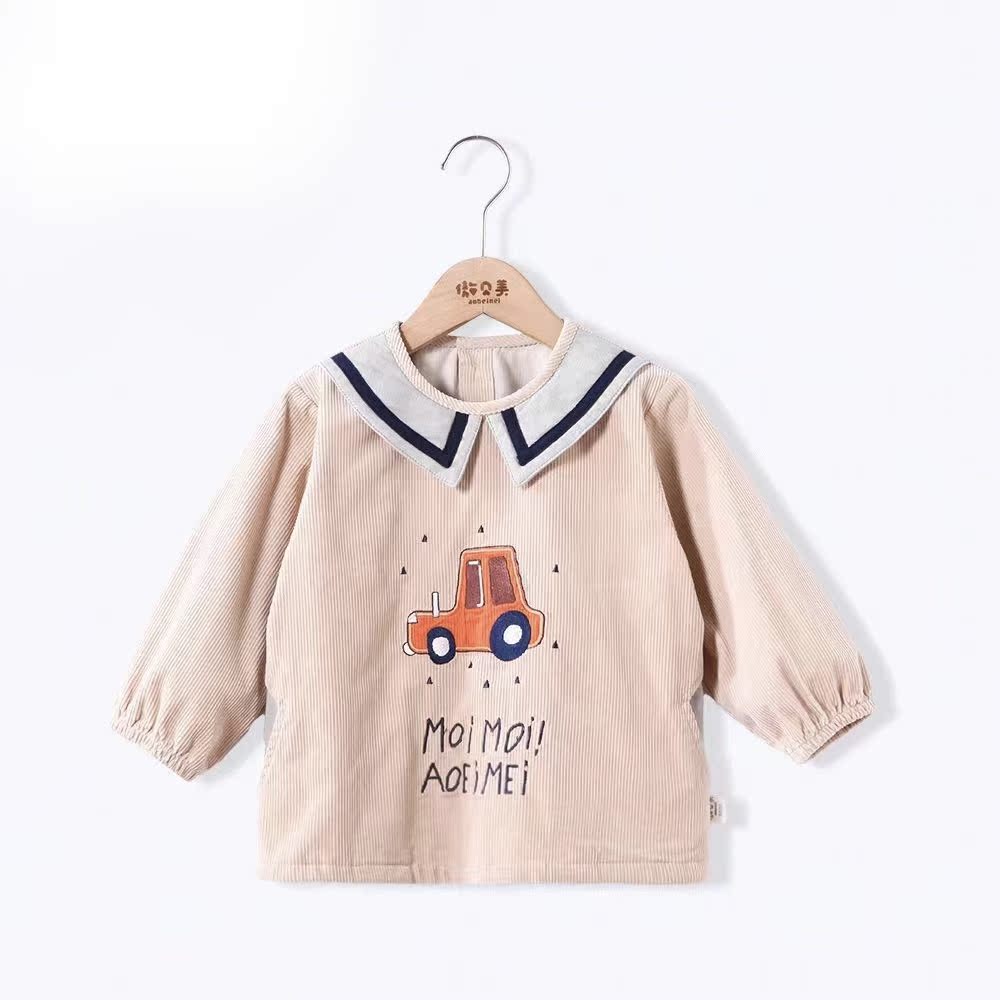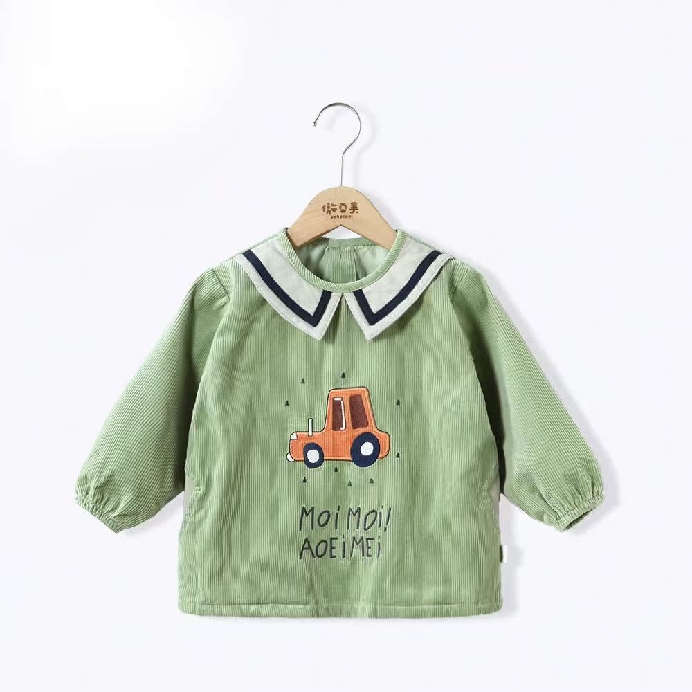 Aobemei corduroy waterproof coveralls children's food shirts baby anti-dressing cartoon car autumn and winter protective clothing