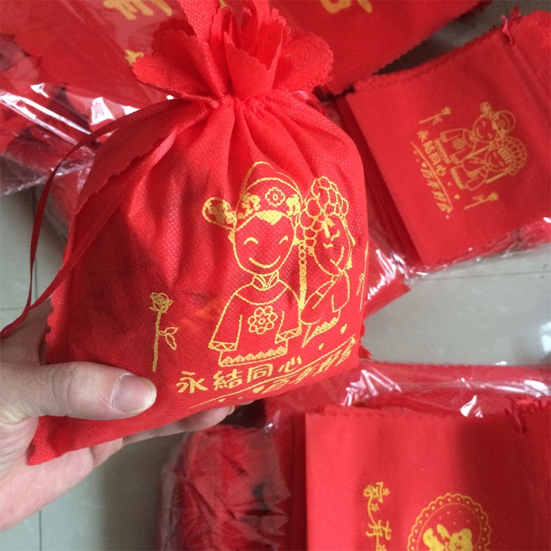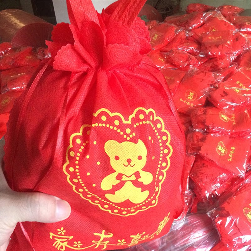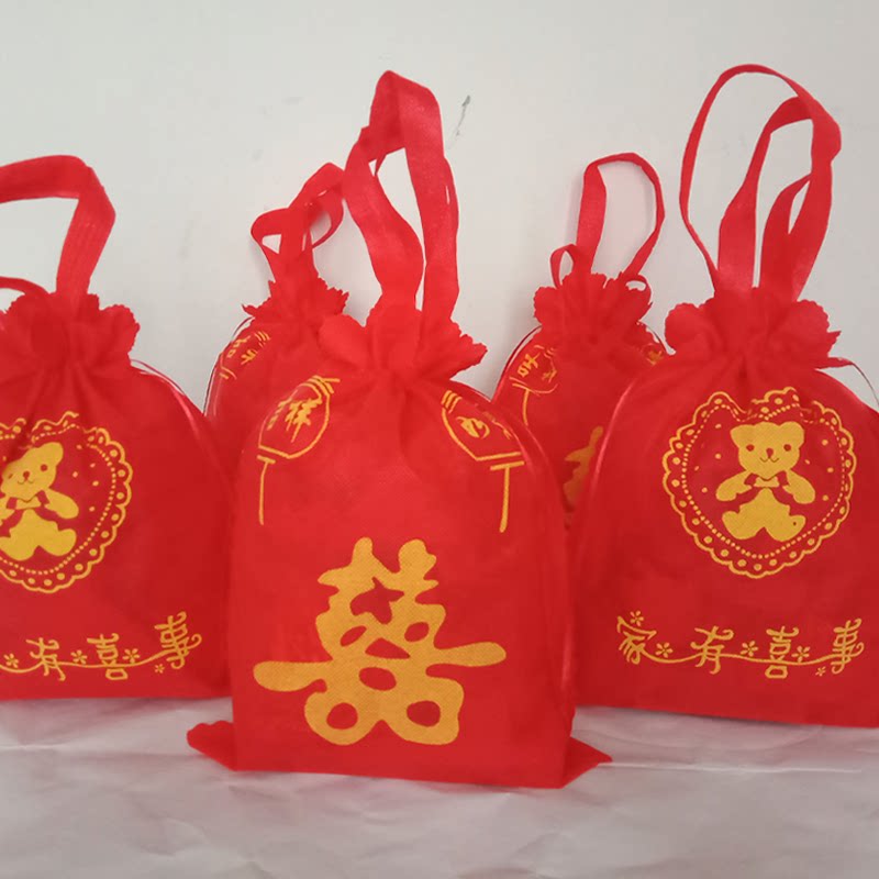 Wedding candy bag bundle mouth portable gift bag wedding full moon birthday general wedding banquet return gift red envelope non-woven cloth bag