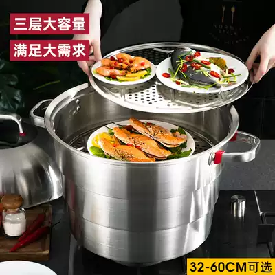45 50 55 60cm thickened king-size stainless steel three-layer steamer Oversized commercial 55cm steamer
