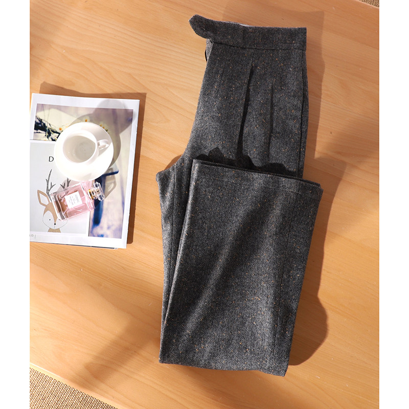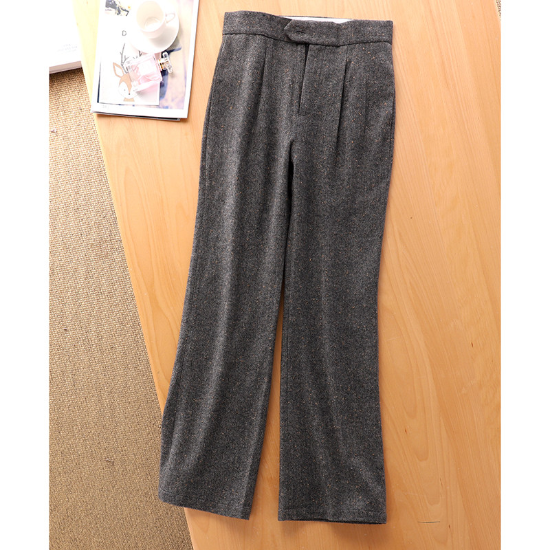 Atmospheric field People texture point yarn color 30 wool woman high waist deep gray horn leisure trousers 69943