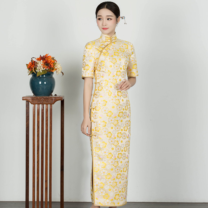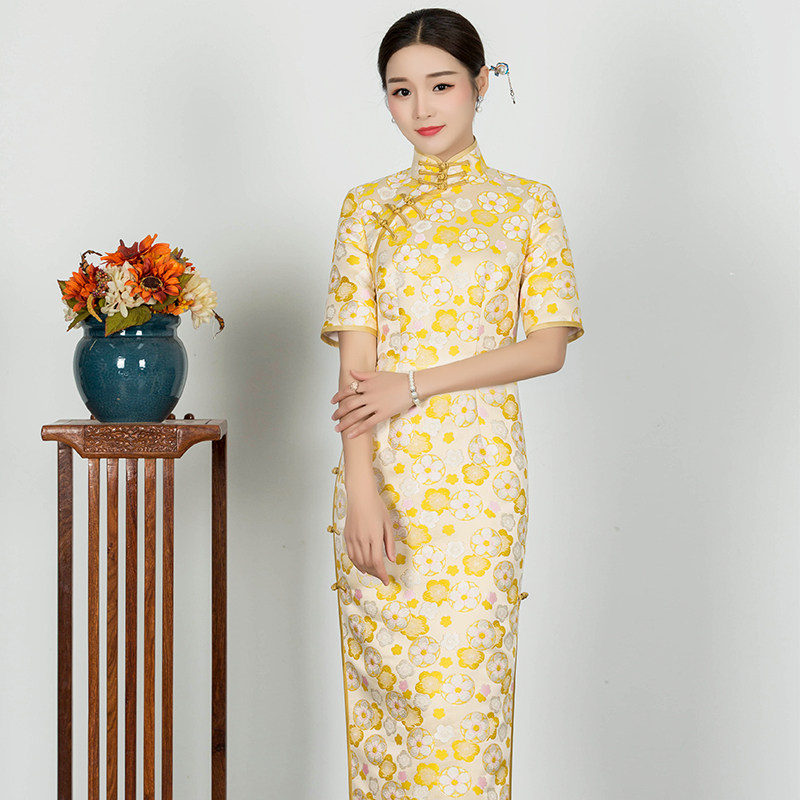 Chinese classic flaggown improved version of the new Chinese retro-style lean temperament elegant long sleeves