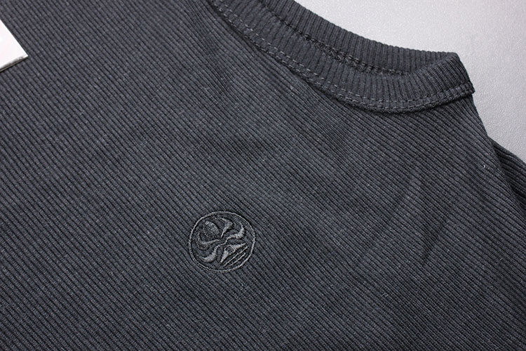 Powder running volume High elastic rib exquisite embroidery Men's solid color sleeveless vest bottoming men's clothing