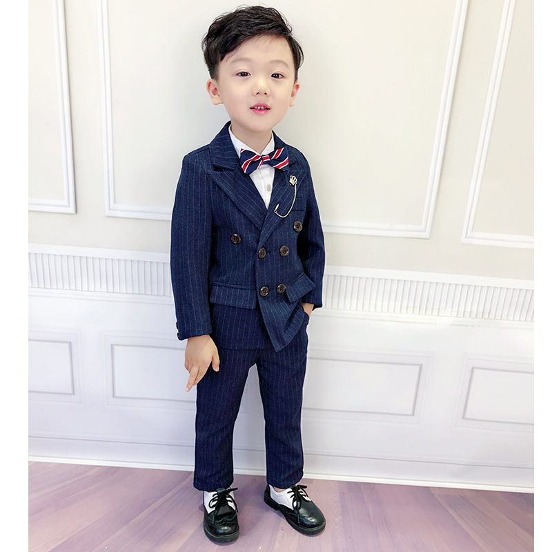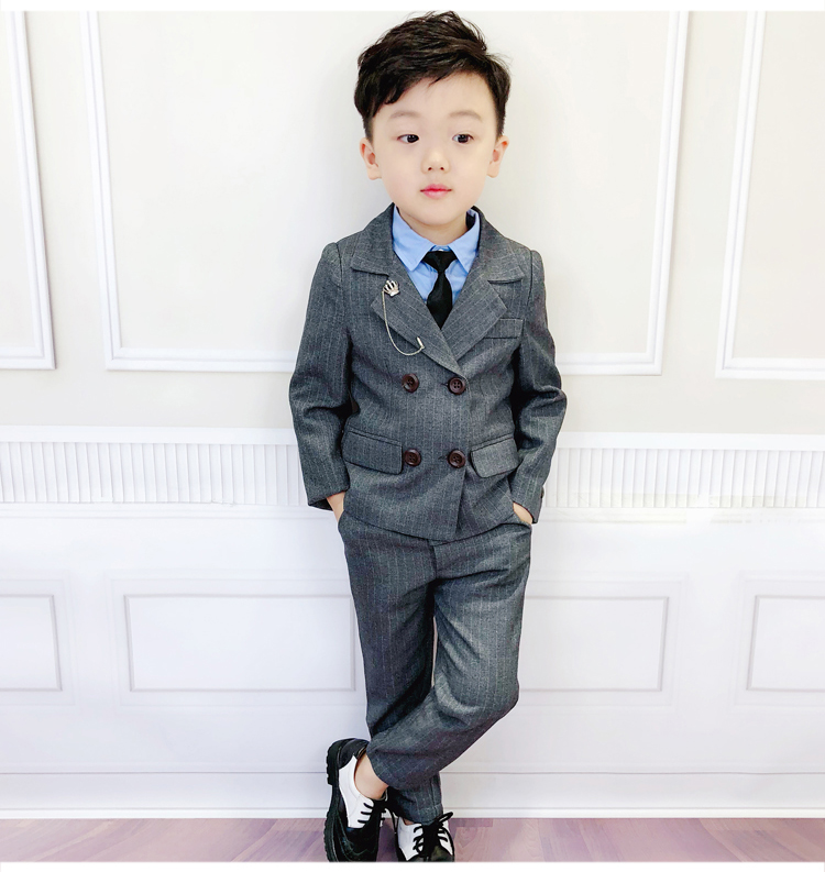 Gray 4-Piece Set (Outer Suit Pants Bow Tie Brooch) Navy 4-Piece Set (Outer Suit Pants Bow Tie Brooch) Gray 5 Piece (Outer Suit Pants Shirt Bow Tie Brooch Navy Blue 5 Pieces (Outer Suit Pants Shirt)