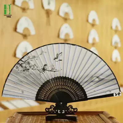 Silk female fan silk Chinese style smile fan plum blossom Japanese female fan Hanfu ancient style folding fan decorative fan