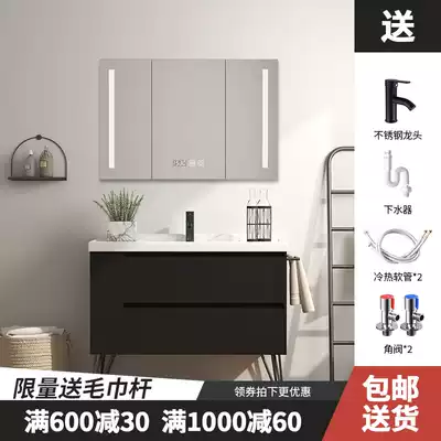 Nordic bathroom cabinet Floor-to-ceiling black smart mirror cabinet Powder room sink sink sink washbasin cabinet combination