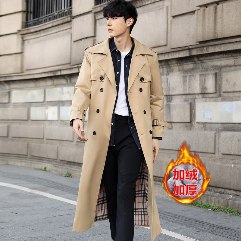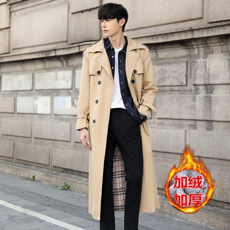 Spring and autumn season wind coat men's super long handsome knee-to-foot naked thickened fat large size oversize coat trend